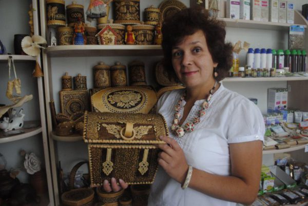 – Китайские сувениры, фен-шуй, знаете, все-таки чуждая нам культура. Модно, но — зачем? — рассуждает Светлана Припорова. – Когда есть свое, исконно русское, возвращающее к истокам… По цене, кстати, и изделия из бересты, и из глины вполне приемлемые – уж точно не дороже китайских.
